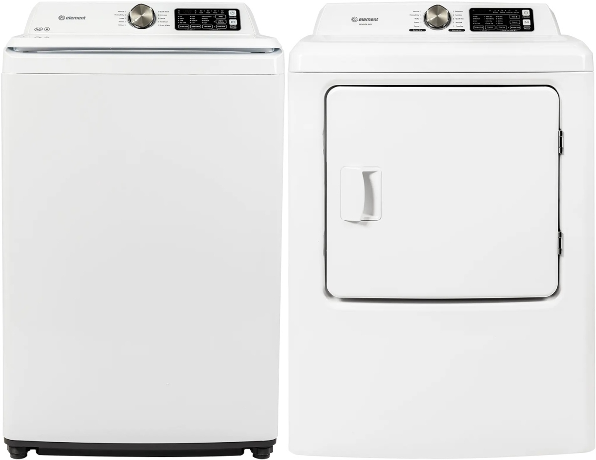 Element® White Laundry Pair with a 4.1 cu. ft. capacity top load washer and a 7 cu. ft. capacity front load electric dryer.Read More
